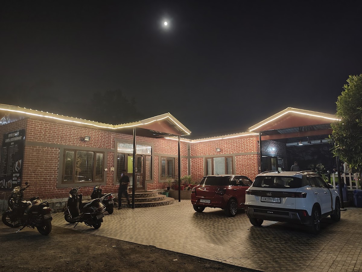 As you approach the café, the gentle sounds of the river envelop you, enhancing the lush backdrop of greenery that surrounds this delightful retreat. The café’s architecture, with its inviting brick design and warm, ambient lighting, creates a rustic charm that beckons you to unwind. With ample garden seating, it's the ideal destination to gather with friends, family, or that special someone under the vast, starry sky.
